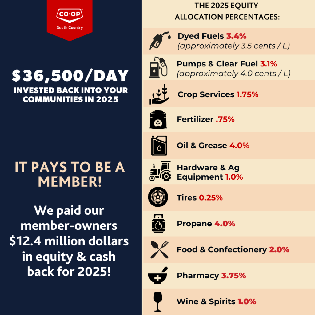 South Country Co-op had four people running for our Board of Directors in 2026 and the results were announced at our AGM on Monday, March 30, 2026. We’re incredibly thankful and grateful for the interest of these people to run for a position on the Board. Your passion for Co-op is admirable and we appreciate you all.