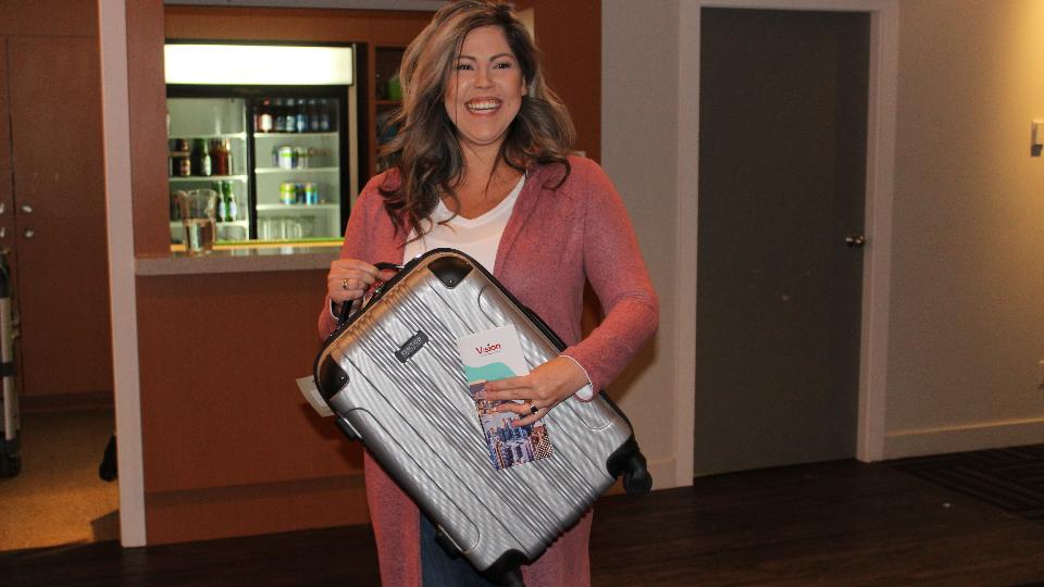 At the gala, each finalist was invited to come to the front of the room and choose a suitcase. Anticipation grew as the night wore on and when the suitcases were finally opened the entire room was filled with cheers and excitement. Congratulations to both Gloria Ferre and Reena Houghton on their big wins! Not all was lost for the finalists who didn't go home with a travel voucher from Vision Travel. Each finalist also took home their suitcase and a swag bag filled with goodies from South Country Co-op, the Medicine Hat News and Desert Blume Golf Course.