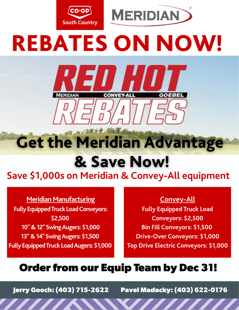 Red Hot Rebates are here to help keep things moving this harvest—save thousands on qualifying Meridian and Convey-All augers and conveyors!